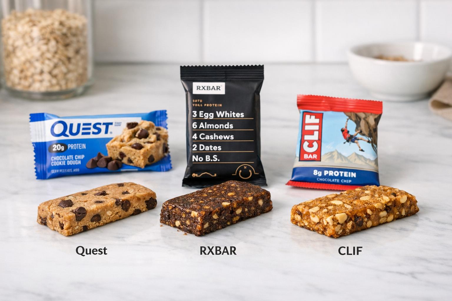 Compare protein bars like Quest, RXBAR, and Clif easily! See calories, protein, carbs, and fat side-by-side with our free, handy tool.